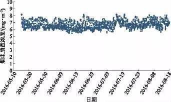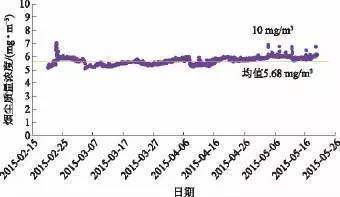 圖3 投運(yùn)一年半的超凈電袋出口顆粒物質(zhì)量濃度