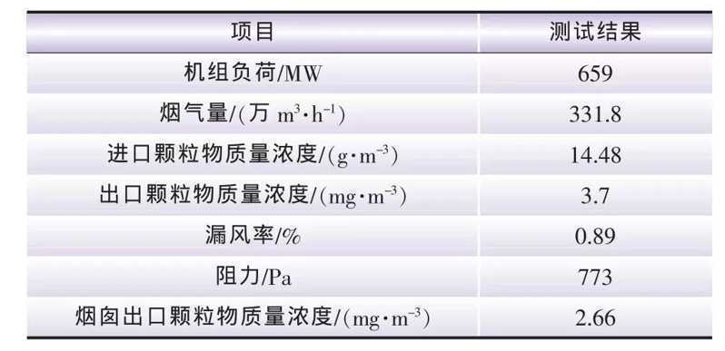 表2 平頂山電廠2號爐超凈電袋性能測試結(jié)果